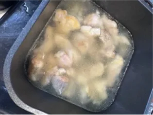 ③鶏肉は一口大に切り、塩胡椒で下味をつけ小麦粉を両面に振る。