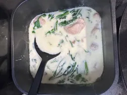 ⑦生クリームとコンソメを加え、少し温めたら完成。