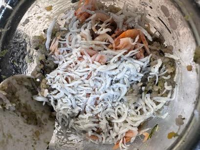 ⑤しらすと桜えびを加えて混ぜ込んだら完成。