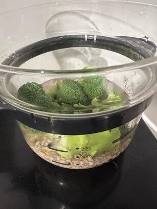 ③ブロッコリーはよく洗い炊飯器に入る大きさに切り、②に加え、通常モードで炊飯する。