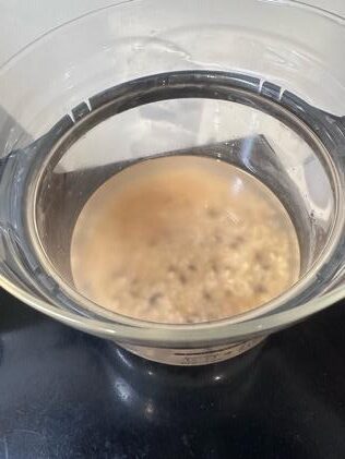①米は研いで30分程浸水させておく。