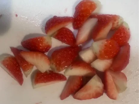 今月の食育レシピは「苺とルッコラの洋風白和え」です。